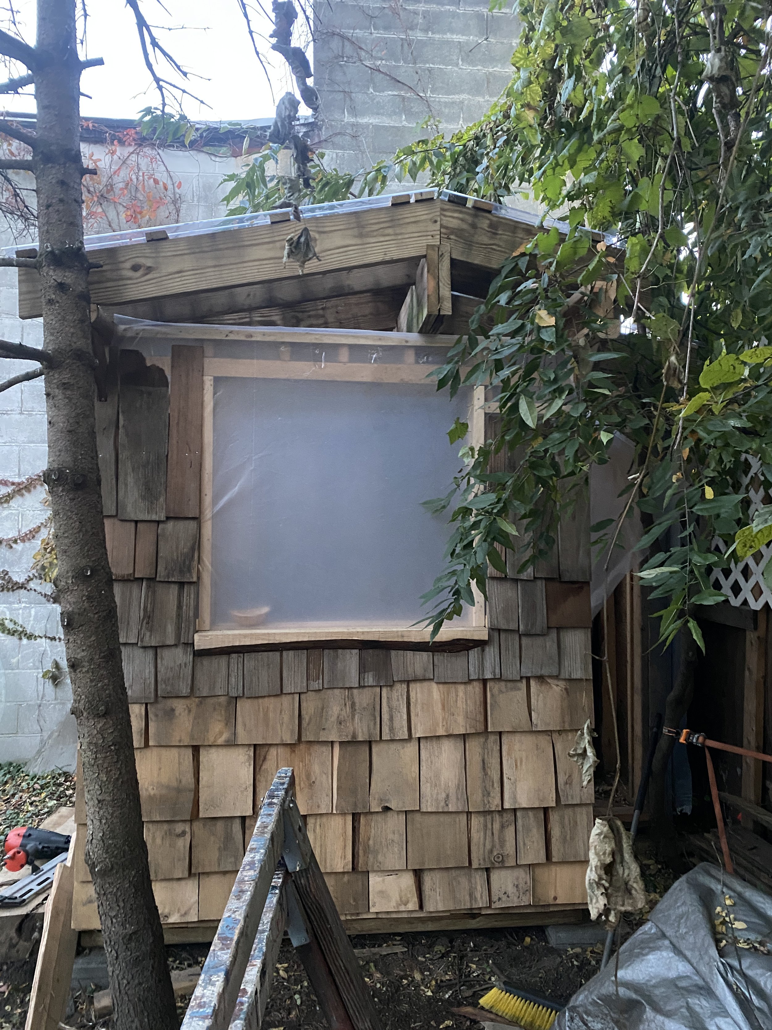 This fun structure is emerging using scraps from previous projects and recycled materials from a local demo. I love to challenge myself to find new ways of utilizing material that would otherwise be thrown away.